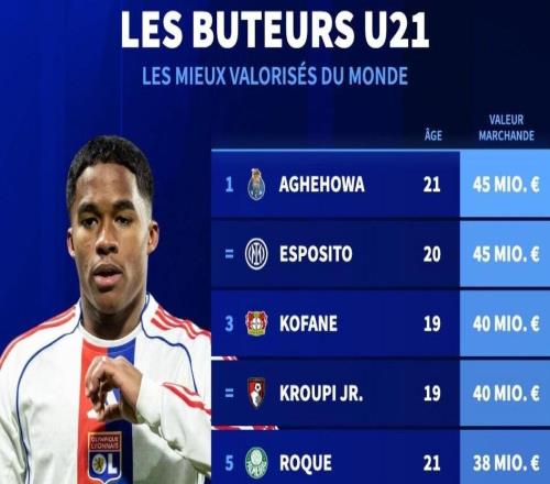 德轉(zhuǎn)U20后衛(wèi)身價(jià)榜:庫巴西8000萬歐第1,雅凱第4,約羅第5
