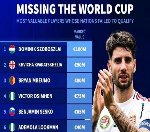 世歐預附加賽進入決賽階段,德轉官方統(tǒng)計無緣今夏世界杯身價最高的球員。匈牙利當家球星、利物浦中場索博斯洛...