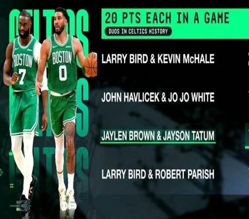 布朗和塔圖姆第194次單場得分均20+,凱爾特人隊(duì)史雙人組第三