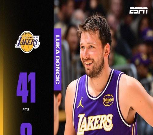 4月1日,湖人主場127比113輕取騎士。湖人球星東契奇火力全開,26投13中,三分球13投6中,罰球10中10,得到42分5籃板12...