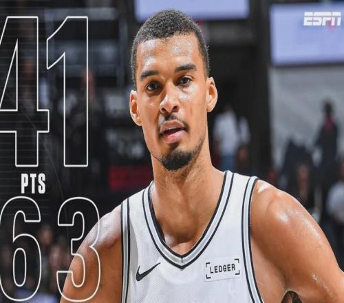 文班亞馬41+16+3蓋帽創(chuàng)兩大歷史第1神跡,馬刺9連勝!卡斯?fàn)枩?zhǔn)3雙