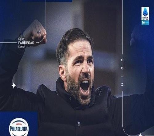 帶領(lǐng)科莫三戰(zhàn)全勝,法布雷加斯當(dāng)選意甲3月最佳教練
