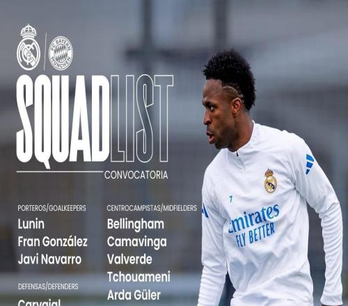 皇馬公布戰(zhàn)拜仁名單:姆巴佩、維尼修斯領(lǐng)銜,貝林厄姆在列