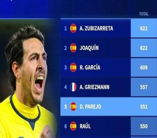 551場(chǎng),帕雷霍西甲出場(chǎng)數(shù)超越勞爾排名聯(lián)賽歷史第5位