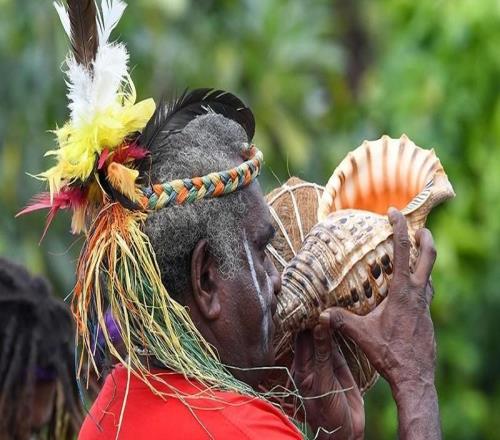 來自家鄉(xiāng)的信物,新喀里多尼亞隊(duì)附加賽前攜帶海螺等飾品合照