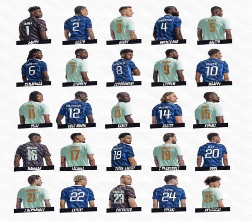 法國(guó)隊(duì)球衣號(hào)碼:姆巴佩10號(hào),馬庫(kù)斯圖拉姆9號(hào)