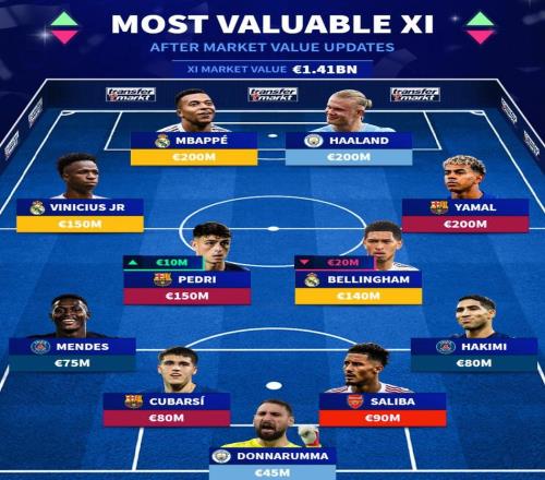 北京時間3月29日,在更新了歐洲五大聯(lián)賽球員的身價之后,德轉(zhuǎn)列出了目前世界足壇最貴的11人陣容,姆巴佩、哈蘭德...