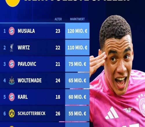 北京時(shí)間3月29日,在完成了歐洲五大聯(lián)賽球員的身價(jià)更新之后,德轉(zhuǎn)列出了德國(guó)球員身價(jià)前10,穆西亞拉1.2億歐元第一...