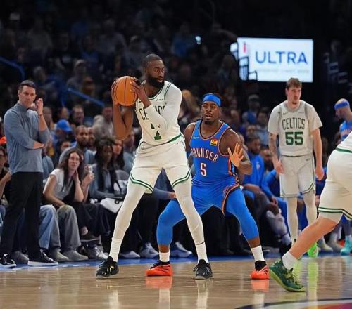 2隊的交手,很可能是總決賽的提前上演,這場對決,也因此吸引力十足!比賽一上來,雷霆就開始在外線發(fā)力,連中3記3分取得領(lǐng)先!不過很快,綠軍也找到手感,在外線頻繁投中3分,但是雷霆首節(jié)狀態(tài)太好了,多點(diǎn)開花,3分更是接連命中,球隊在首節(jié)也建立了11分領(lǐng)先!2隊在次節(jié)展開對轟,你來我往,比分交替上升!布朗投中3分,塔圖姆內(nèi)突外投連續(xù)取分,綠軍2大球星開始發(fā)力,逐漸占據(jù)了場上主動,一舉反超3分,好在雷霆及時找回狀態(tài),連砍7分走出回應(yīng),半場保持著4分領(lǐng)先!