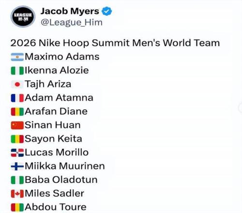 郇斯楠入選籃球峰會國際隊!阿里扎兒子連續(xù)兩年入選4月12日開賽