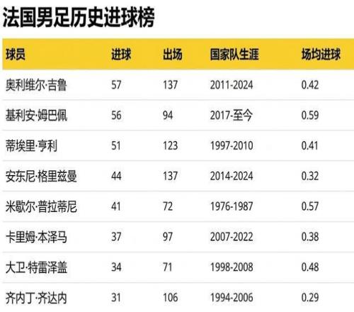姆巴佩距法國隊史射手王就差1球,吉魯?shù)募o錄快保不住了!