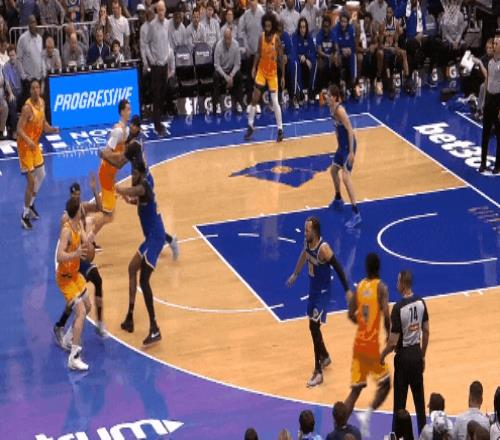 橫移中維持平衡,搶投三分讓唐斯夠不到。