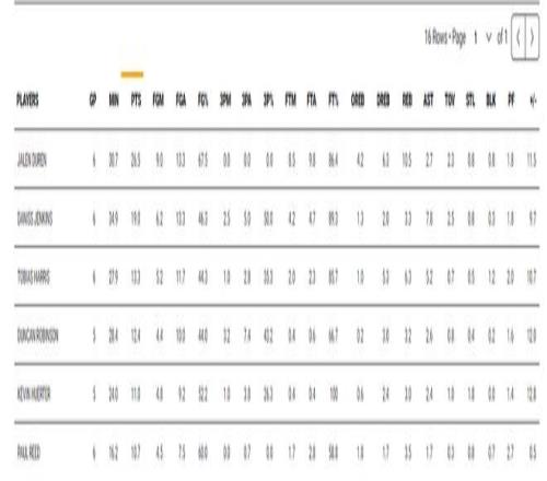 本賽季杜倫的數(shù)據(jù)突飛猛進(jìn),目前場(chǎng)均28分鐘,拿到19.5分10.6籃板1.8助攻0.9搶斷0.9蓋帽,命中率64.3%,罰球命中率74.4%。