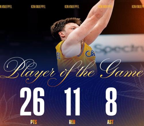 此役新秀克努佩爾全場比賽37分鐘,14中9,三分10中6,罰球4中2,拿到26分11籃板8助攻,命中率64.3%,三分命中率60%,真實命中率82.5%,正負(fù)值+15。