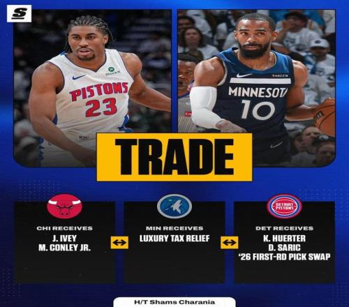 ——活塞得到赫爾特、沙里奇、2026年的受保護首輪互換權(與森林狼)