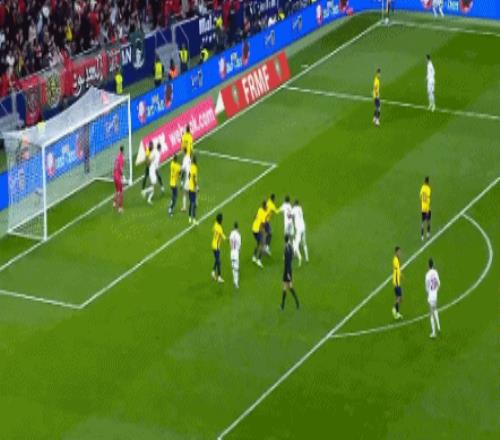 第88分鐘,阿什拉夫角球助攻,艾納維頭球破門,摩洛哥1-1厄瓜多爾