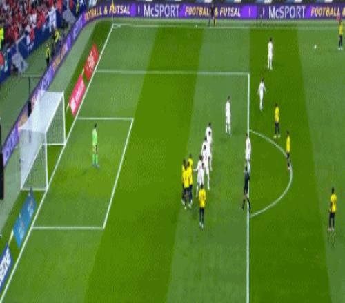第12分鐘,普拉塔頭球攻門,皮球高出球門