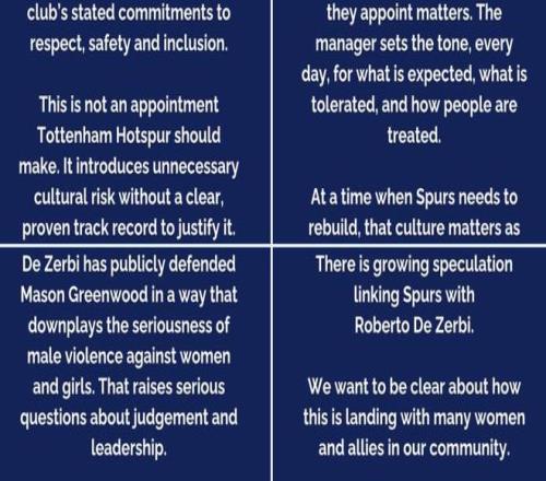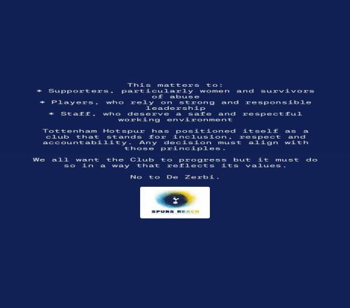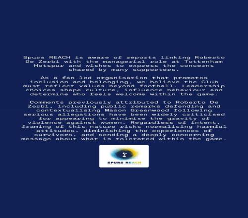 熱刺同心(Spurs REACH)注意到了將羅伯托-德澤爾比與熱刺主教練職位聯(lián)系起來的報道,希望在此表達眾多球迷共同的擔憂。
