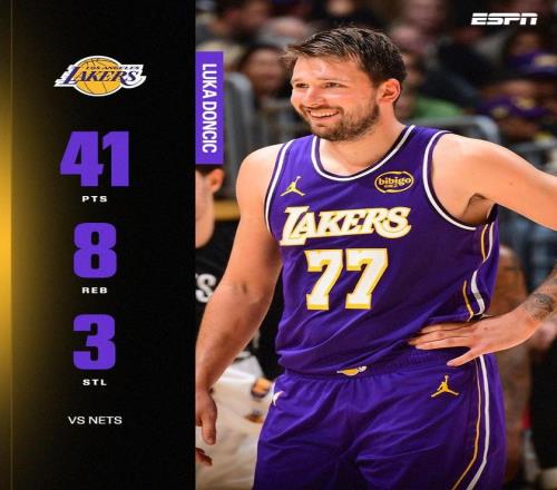 北京時(shí)間3月28日,NBA常規(guī)賽洛杉磯湖人主場(chǎng)116-99戰(zhàn)勝布魯克林籃網(wǎng),東契奇全場(chǎng)25投15中,砍下41分8籃板3助攻。