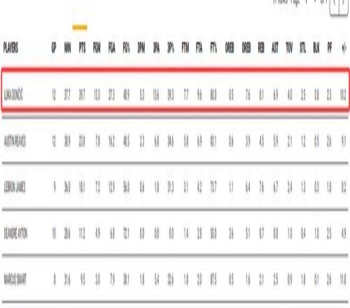 湖人最近12場比賽拿到11場勝利,期間東契奇場均37.7分鐘,拿到39.7分8.1籃板6.9助攻2.5搶斷,命中率49%、三分命中率39%、罰球命中率80%,真實(shí)命中率63%,正負(fù)值為+122。