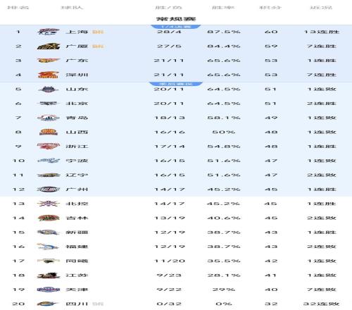 CBA一夜3場(chǎng)慘案:廣東廣廈深圳大勝上海翻盤(pán)山西!最新排名亂了