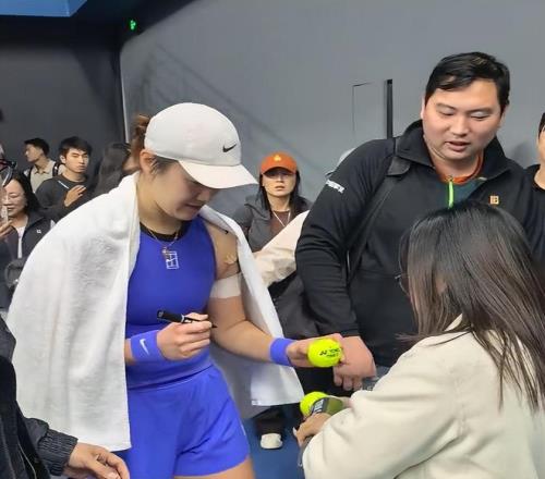 王曦雨在贏球之后看到母親在場邊,她一路小跑過去,和母親擁抱在一起,享受這幸福時刻。王曦雨隨后不停地給身邊的人簽名,母親將毛巾披在了王曦雨身上,擔(dān)心剛剛打完比賽,出了一身汗的王曦雨著涼。