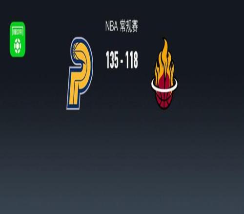 第四節(jié)步行者西亞卡姆拿下10分,熱火阿德巴約拿下4分,最終步行者135-118戰(zhàn)勝熱火