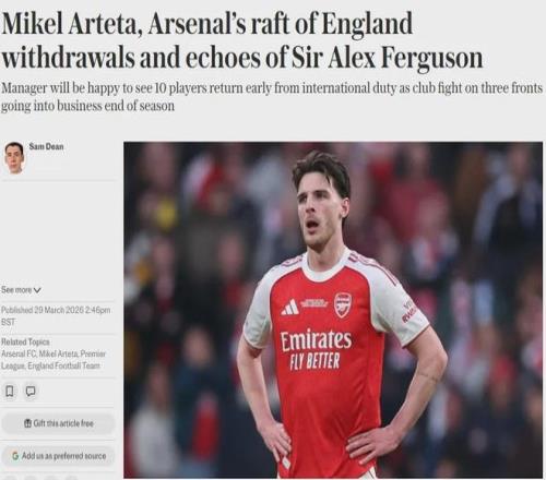 法爾克:阿森納領(lǐng)先新星特雷索爾迪爭奪!槍手10人退出本期國家隊