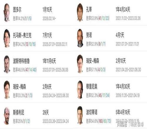 有趣的是,排名第一的阿勒代斯,執(zhí)教利茲聯(lián)只有短短31天,而且在英格蘭代表隊(duì)也僅僅執(zhí)教一場(chǎng),勝率百分之一百,很快就下課,同時(shí)創(chuàng)造了俱樂部和國(guó)家隊(duì)最短的紀(jì)錄,十分難得。排名第二的,熱刺球迷也相當(dāng)熟悉,波斯特科格魯本賽季在諾丁漢森林只停留了40天,一場(chǎng)不勝。