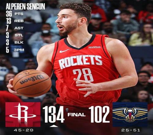 申京36+14+7 火箭大勝鵜鶘