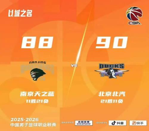 末節(jié)決戰(zhàn),漢茲干拔中距離,鄔挺嘉突破拋投打板。周琦壓哨放籃,趙睿、杰曼接連罰球取分。漢茲蝴蝶穿花突入禁區(qū)拋投入框,周琦禁區(qū)吃餅。漢茲再造殺傷兩罰中一,周琦二次進(jìn)攻得手,隨后兩罰中一,兩隊(duì)打成77平。杰曼對(duì)抗上籃,帕克調(diào)高弧度中投打板。趙睿接應(yīng)三分命中,球隊(duì)暫停調(diào)整。祝銘震壓哨底角三分命中,杰曼連突帶罰連得4分,球隊(duì)再叫暫停。翟曉川底角中距離顛進(jìn),柏清再殺內(nèi)線兩罰中一。帕克閃電上籃再追兩分,隨后眼看無法完成逼搶,迅速進(jìn)行犯規(guī)戰(zhàn)術(shù)。陳盈駿兩罰命中,威廉超遠(yuǎn)三分也有,可惜時(shí)間所剩無幾,最終全場(chǎng)比賽結(jié)束,南京天之藍(lán)88-90北京北汽。