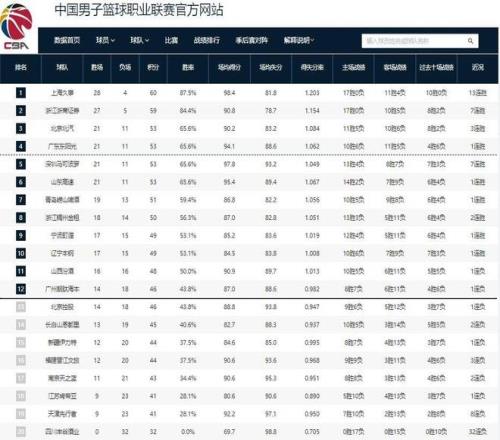 CBA最新排名!上海男籃一枝獨(dú)秀,廣東第四北京險(xiǎn)勝遼寧山東止敗