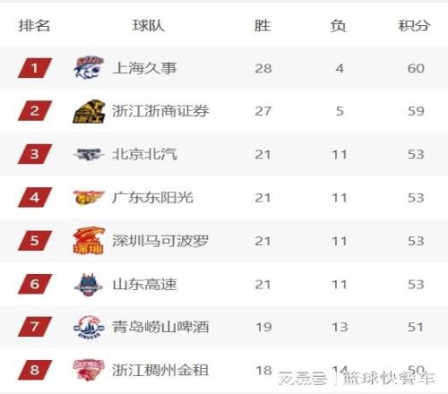 附:CBA積分榜最新排名