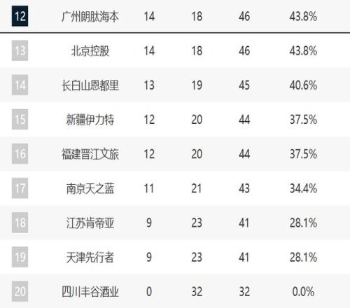 至于江蘇、天津這輪也都輸球了,他們落后第12還有5個勝場,基本上沒什么希望了。四川則是32連敗了。