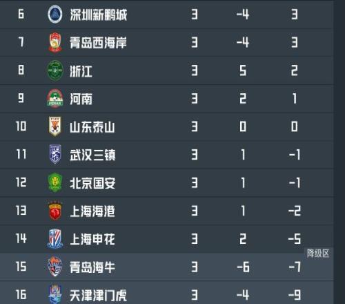 前面3輪中超戰(zhàn)罷,上海申花1勝2平,未嘗敗績,積5分,減去起步時所扣掉的-10,申花目前的積分僅為-5,還在負(fù)分階段掙扎,排在中超積分榜的倒數(shù)第3位。而對手天津津門虎更慘,前面3輪過后,他們1平2負(fù),積1分,減去起步時所扣掉的-10,津門虎目前的積分僅為-9,妥妥積分墊底,淪為中超副班長。