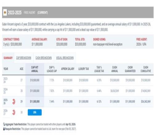 文森特三年3300萬的合同到期后他可能就沒有千萬年薪的可能性,今夏文森特只能去追逐底薪或部分中產(chǎn)560萬左右的合同了。