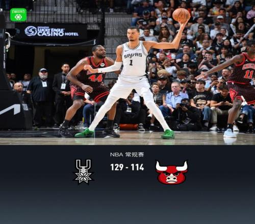 第四節(jié)馬刺文班亞馬拿下6分,公牛布澤利斯拿下10分,最終馬刺129-114戰(zhàn)勝公牛