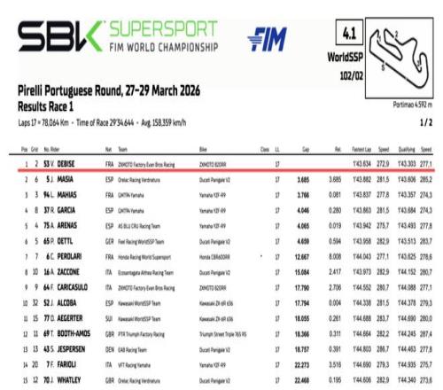 波爾蒂芒賽道的周日午后,歷史被重新書寫。WSBK世界超級(jí)摩托車錦標(biāo)賽Supersport組別葡萄牙站第一回合正賽落下帷幕,張雪機(jī)車廠隊(duì)車手瓦倫丁·德比斯駕駛著ZXMOTO 820RR-RS賽車歷經(jīng)十七圈鏖戰(zhàn),最終以3.685秒的優(yōu)勢(shì)率先沖線。這不僅是他個(gè)人職業(yè)生涯的高光時(shí)刻,更標(biāo)志著中國(guó)制造商在世界頂級(jí)公路摩托車賽事中實(shí)現(xiàn)了零的突破——自WorldSSP創(chuàng)立以來(lái),冠軍榜上首次出現(xiàn)了來(lái)自中國(guó)的廠牌。