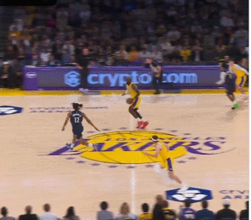 第一節(jié)剛開(kāi)始沒(méi)多久,湖人在防守端成功攔下對(duì)手,隨即掀起快攻。老詹先是把球分給了里夫斯,結(jié)果這位老哥快攻中差點(diǎn)翻車(chē)把球給弄丟了!好在里夫斯一頓手忙腳亂把球重新控制住,緊接著就是一個(gè)輕巧的向上拋傳——四屆MVP得主詹姆斯心領(lǐng)神會(huì),高高躍起,用一記勢(shì)大力沉的空中接力暴扣狠狠終結(jié)了回合。
