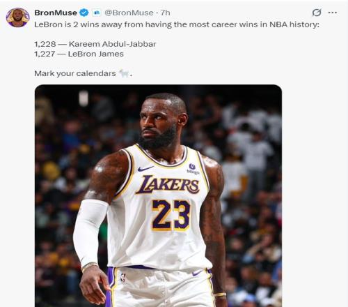 這場比賽勒布朗只要贏球就會迎來一項新的里程碑,他的勝場數(shù)1228場追平賈巴爾并列歷史第一,還差1勝就獨享歷史第一勝場王。