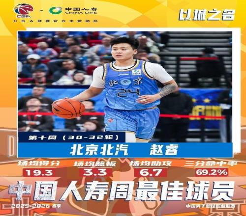趙睿如今是加盟北京首次當(dāng)選本土周最佳,也是生涯第2次,上一次還是2018-19賽季,也是他時(shí)隔7年再次當(dāng)選本土周最佳。