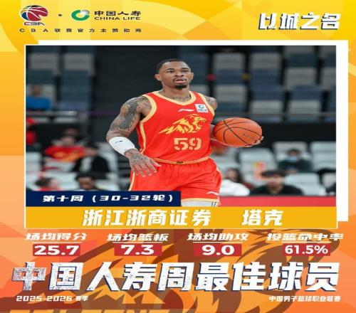北京時(shí)間3月31日,CBA官方宣布,趙睿、塔克當(dāng)選2025-2026賽季CBA聯(lián)賽常規(guī)賽第十周中國(guó)人壽周最佳球員。
