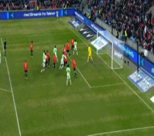 第54分鐘,努薩左路做球,桑德-貝格禁區(qū)內(nèi)妙傳,前者積極前插,姆沃戈搶先一步出擊將球沒收。