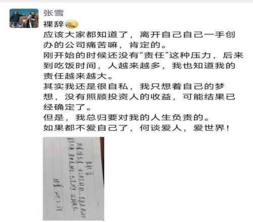 2024 年 3 月 1 日,37 歲的張雪在朋友圈曬出了一封辭職信。
