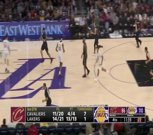 第三節(jié)湖人進(jìn)攻徹底爆發(fā),打了對(duì)手45-30攻擊波,直接將領(lǐng)先優(yōu)勢(shì)擴(kuò)大到27分,騎士對(duì)此似乎放棄了比賽,末節(jié)開(kāi)局上了一套替補(bǔ)陣容。
