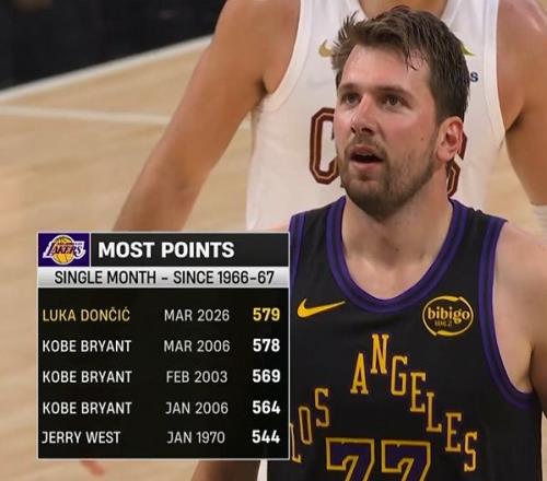 第六,東契奇單月579分超越06賽季的科比成湖人隊(duì)史單月得分王。