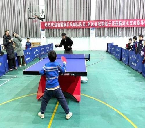 趙子豪走進(jìn)江蘇漣水縣鄭梁梅小學(xué),推廣乒乓球運(yùn)動(dòng)。