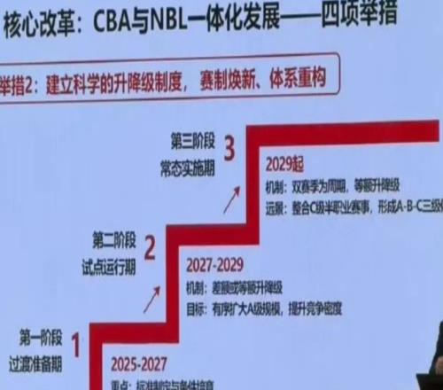 目前CBA公司已經(jīng)是開(kāi)始為明年做規(guī)劃了,根據(jù)CBA開(kāi)會(huì)的過(guò)程當(dāng)中我們可以了解到,CBA將會(huì)是重啟升降級(jí)的制度,在過(guò)去的十幾年當(dāng)中,CBA一共就是只有20支隊(duì)伍的,之前很多球隊(duì)想要加入進(jìn)來(lái)都被拒絕了,像是安徽文一、香港金牛等等這些球隊(duì),因?yàn)樵贜BL非常吃香,但是始終敲不開(kāi)CBA的大門(mén),但是從2027年開(kāi)始將會(huì)試行升降級(jí)的制度,主要就是對(duì)于CBA聯(lián)賽后四名的球隊(duì)跟NBL前四名的隊(duì)伍進(jìn)行對(duì)決,輸?shù)舻那蜿?duì)將會(huì)降級(jí)發(fā)展!