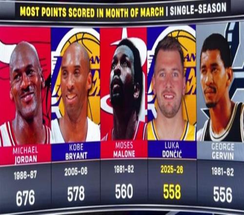 本場比賽結(jié)束后,3月份東契奇總得分定格在600分,成為NBA歷史上第二位在三月份總得分達到600分大關的球員,比肩籃球之神喬丹,期間東契奇場均可以交出37.5分8板7.4助2.3斷。