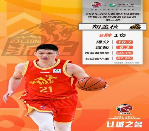 20252026賽季第三期中國(guó)人壽月度最佳國(guó)內(nèi)球員胡金秋